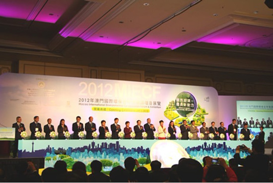 由澳門特區政府主辦的“2012年澳門國際環保合作發展論壇及展覽(MIECF)”于3月29日上午在澳門特別行政區隆重開幕。澳門特別行政區行政長官崔世安在開幕式上致辭,全國政協副主席、科學技術部部長萬鋼,國家發展和改革委員會解振華副主任代表、資源節約和環境保護司副司長趙鵬高,環境保護部周生賢部長代表、國際合作司副司長兼港澳辦副主任宋小智出席開幕式并做主旨發言。本次展會的主題是“綠色經濟——增長新動力”,主辦方表示,希望以澳門作為世界旅游休閑中心及低碳城市的角色,來推動綠色商貿、技術和經濟的發展。