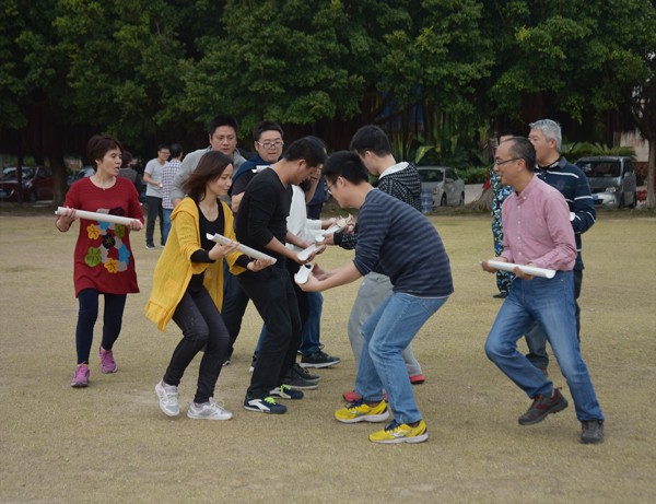 2月4日中午,公司全員順利抵達目的地。隨著熱身游戲“流水作業(yè)”的開展,本次活動的第一個項目——團體拓展正式開始。“無敵風(fēng)火輪”、“螃蟹賽跑”等項目不斷將活動推向高潮,你爭我趕的氛圍讓大家在游戲中加強了團隊協(xié)作意識和集體榮譽感。最后,拓展活動在“鼓舞飛揚”中圓滿結(jié)束。