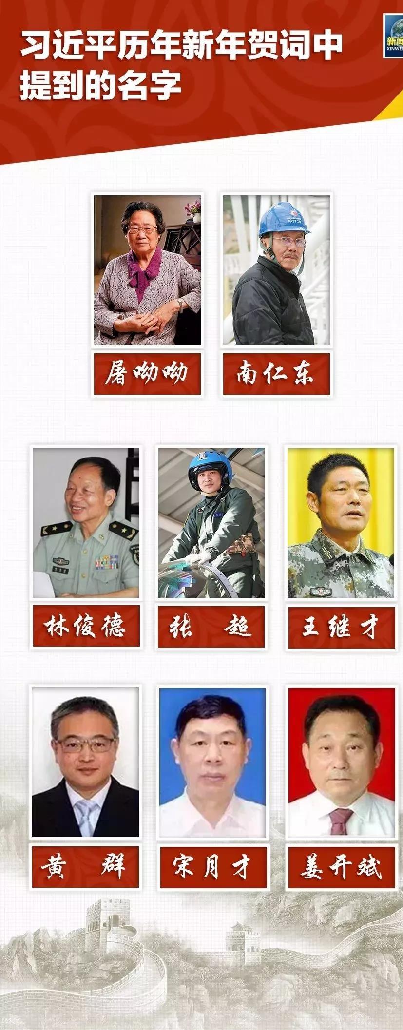 不僅是為人民點(diǎn)贊,習(xí)主席在6篇新年賀詞中也提到了一些具體的名字,并為一些群體點(diǎn)贊——